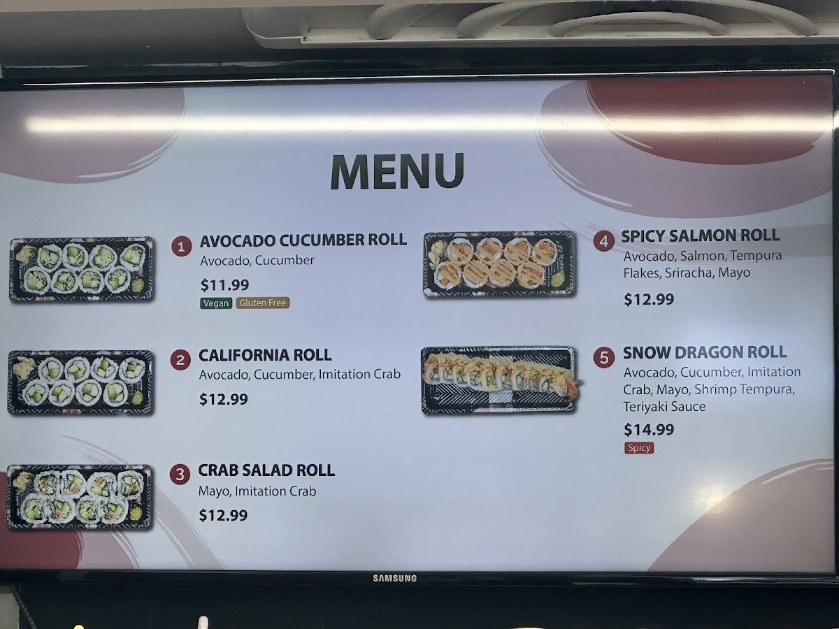 For sushi lovers, the café features a variety of rolls, including the zesty Spicy Salmon Roll for CA$12.99 and the sumptuous Snow Dragon Roll at CA$14.99, both crafted to perfection to enhance your taste experience. The café also caters to those looking for quick bites with options like the Love Me Tenders and an array of snacks, including Drumsticks and Cotton Candy, making it a sweet stop for dessert lovers.